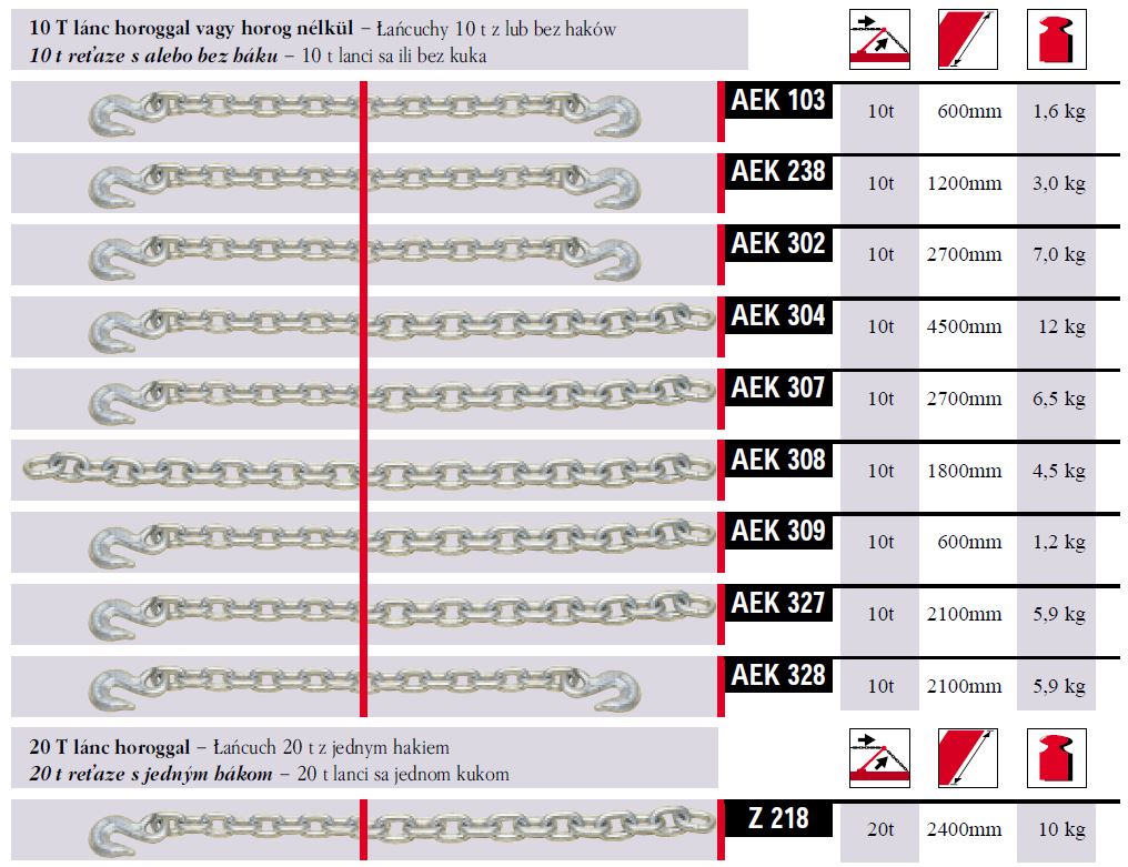AEK 327 – Łańcuch blacharski JEDNOHAKOWY 2,1m – 10t, waga: 5,3kg