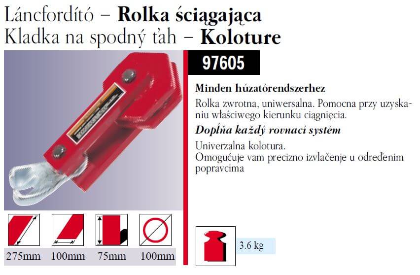 Rolka zwrotna uniwersalna. Pomocna przy uzyskaniu właściwego kierunku ciągnięcia